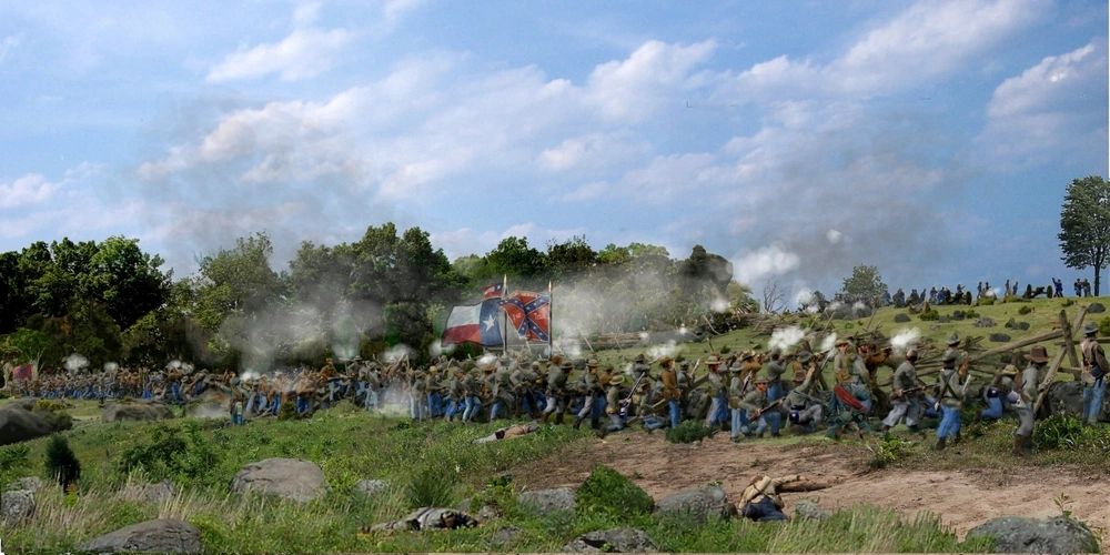 The 1st Texas Regiment had already compiled a distinguished record before reaching Gettysburg. First commanded by the Colonel John Bell Hood, the 1st had collected battle honors at Gaines Mill and 2nd Manassas.