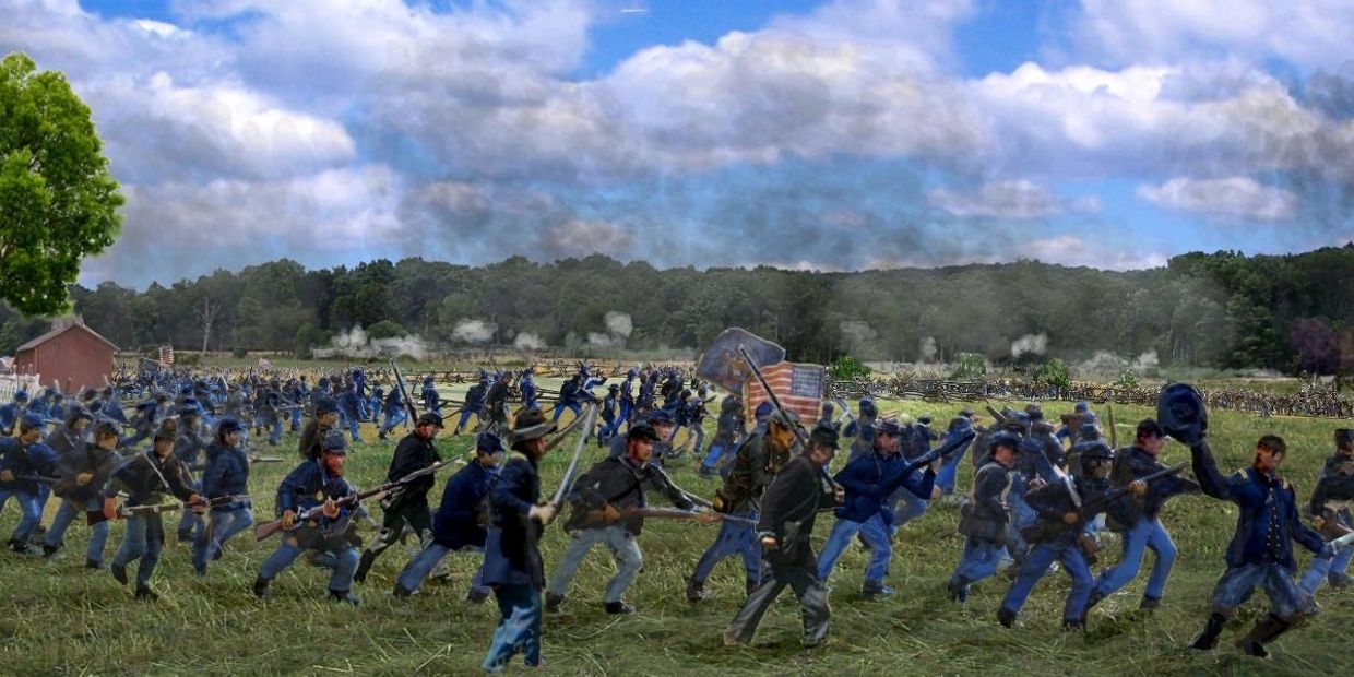 At about 6:00 PM Barksdale’s Brigade was ordered forward. “Yelling like demons, black with smoke and lusting for hand-to-hand conflict, the enveloping mass of Confederates rushed the enclosures and speedily gained possession of them ....and a great gap was opened in the Federal line.”